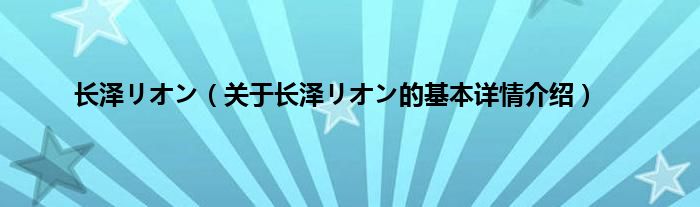 本文关于长泽リオン的基本详情介绍就讲解完毕,希望对大家有所帮助。