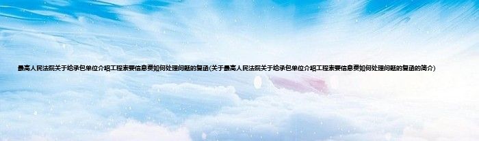 大家好,最高人民法院关于给承包单位介绍工程索要信息费如何处理问题的复函,关于最高人民法院关于给承包单位介绍工程索要信息费如何处理问题的复函的简介很多人还不知道,现在让我们一起来看看吧!