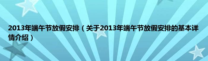2013年端午节放假安排(关于2013年端午节放假安排的基本详情介绍)
