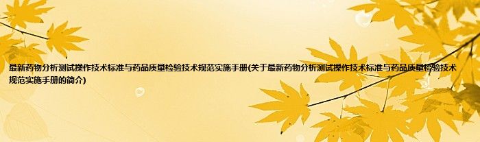 1、 《最新药物分析测试操作技术标准与药品质量检验技术规范实施手册》是一本药学专业指导书。