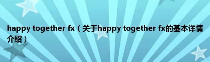 本文关于happy together fx的基本详情介绍就讲解完毕,希望对大家有所帮助。