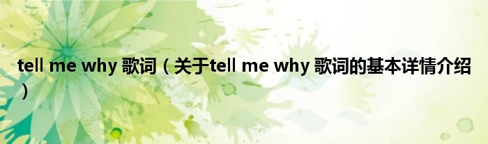 本文关于tell me why 歌词的基本详情介绍就讲解完毕,希望对大家有所帮助。