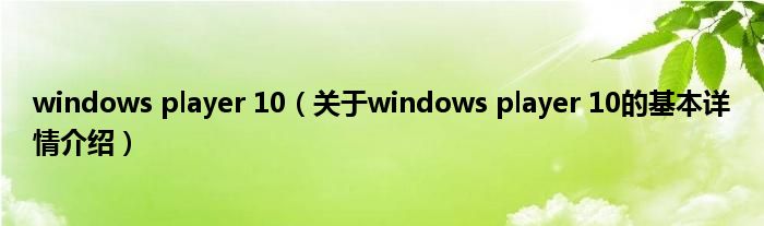 windows player 10(关于windows player 10的基本详情介绍)