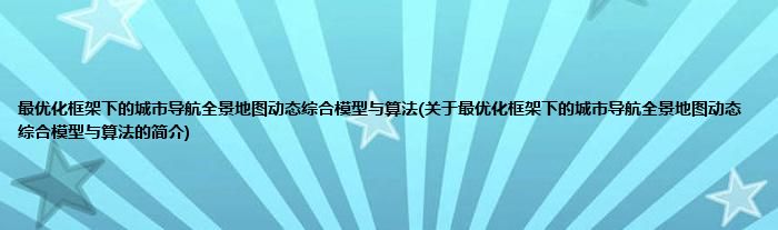 本文关于最优化框架下的城市导航全景地图动态综合模型与算法的简介就讲解完毕,希望对大家有所帮助。