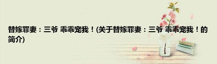 替嫁罪妻:三爷 乖乖宠我!(关于替嫁罪妻:三爷 乖乖宠我!的简介)