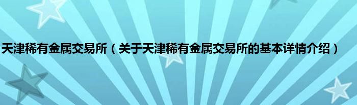 本文关于天津稀有金属交易所的基本详情介绍就讲解完毕,希望对大家有所帮助。