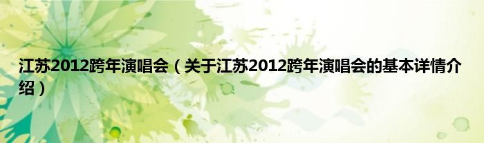 江苏2012跨年演唱会(关于江苏2012跨年演唱会的基本详情介绍)