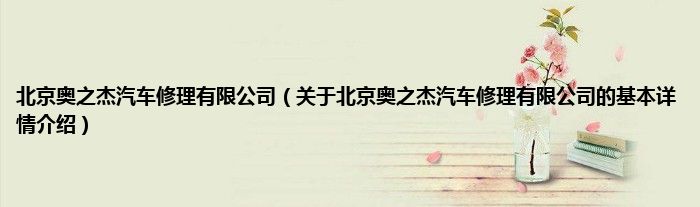 本文关于北京奥之杰汽车修理有限公司的基本详情介绍就讲解完毕,希望对大家有所帮助。