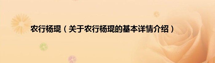 本文关于农行杨琨的基本详情介绍就讲解完毕,希望对大家有所帮助。