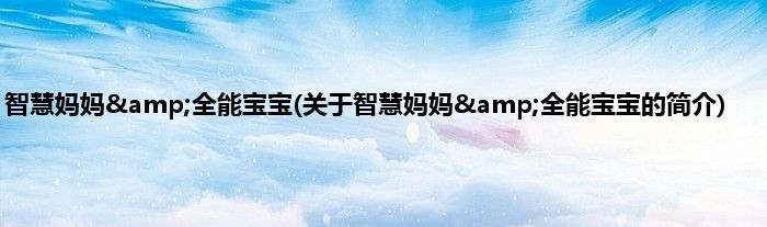 大家好,智慧妈妈&全能宝宝,关于智慧妈妈&全能宝宝的简介很多人还不知道,现在让我们一起来看看吧!
