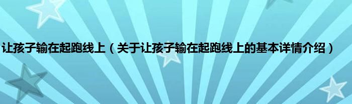 本文关于让孩子输在起跑线上的基本详情介绍就讲解完毕,希望对大家有所帮助。