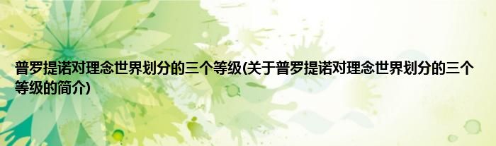 本文关于普罗提诺对理念世界划分的三个等级的简介就讲解完毕,希望对大家有所帮助。