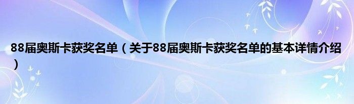 本文关于88届奥斯卡获奖名单的基本详情介绍就讲解完毕,希望对大家有所帮助。