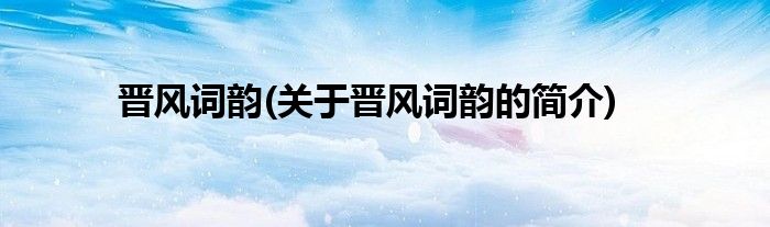 本文关于晋风词韵的简介就讲解完毕,希望对大家有所帮助。