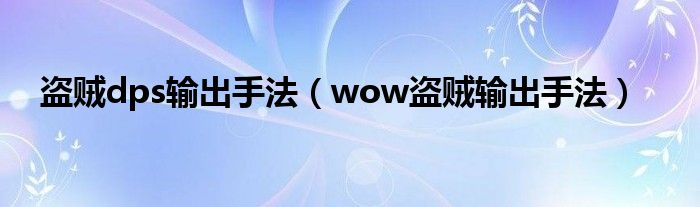 以上就是【盗贼dps输出手法,wow盗贼输出手法】相关内容。