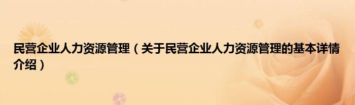 本文关于民营企业人力资源管理的基本详情介绍就讲解完毕,希望对大家有所帮助。