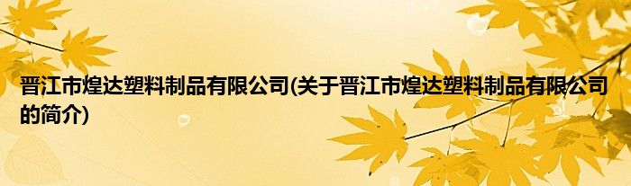 晋江市煌达塑料制品有限公司(关于晋江市煌达塑料制品有限公司的简介)