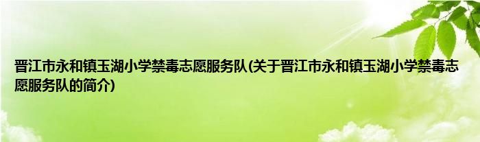本文关于晋江市永和镇玉湖小学禁毒志愿服务队的简介就讲解完毕,希望对大家有所帮助。
