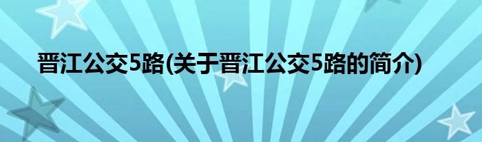 本文关于晋江公交5路的简介就讲解完毕,希望对大家有所帮助。