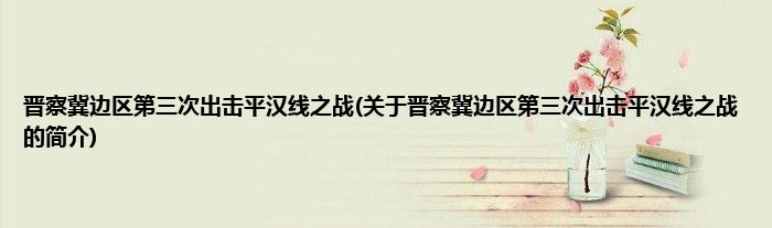 大家好,晋察冀边区第三次出击平汉线之战,关于晋察冀边区第三次出击平汉线之战的简介很多人还不知道,现在让我们一起来看看吧!