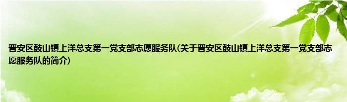 1、 晋安区鼓山镇上洋总支第一党支部志愿服务队是由鼓山镇领导下的志愿团体。