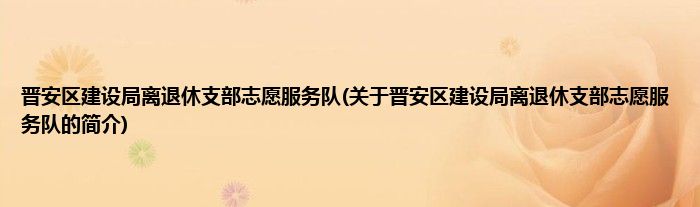 本文关于晋安区建设局离退休支部志愿服务队的简介就讲解完毕,希望对大家有所帮助。