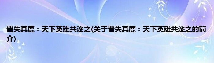 大家好,晋失其鹿:天下英雄共逐之,关于晋失其鹿:天下英雄共逐之的简介很多人还不知道,现在让我们一起来看看吧!