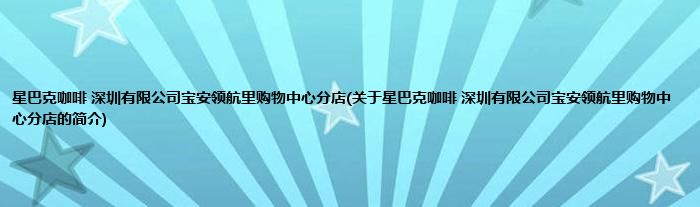 本文关于星巴克咖啡 深圳有限公司宝安领航里购物中心分店的简介就讲解完毕,希望对大家有所帮助。