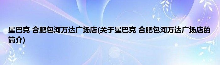 星巴克 合肥包河万达广场店(关于星巴克 合肥包河万达广场店的简介)