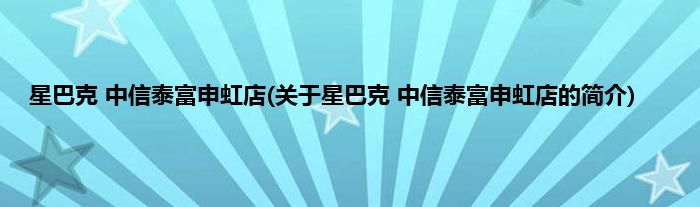 大家好,星巴克 中信泰富申虹店,关于星巴克 中信泰富申虹店的简介很多人还不知道,现在让我们一起来看看吧!