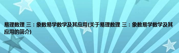 1、 《易理数理(三):象数易学数学及其应用》是2010年团结出版社出版的图书。