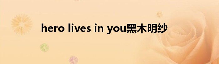 大家好,小问来为大家解答以上问题。hero lives in you黑木明纱这个很多人还不知道,现在让我们一起来看看吧!