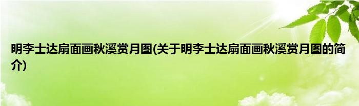 1、 《明李士达扇面画秋溪赏月图》是明代李士达创作的扇面画。