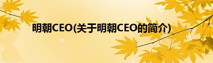大家好,明朝CEO,关于明朝CEO的简介很多人还不知道,现在让我们一起来看看吧!