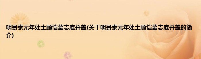 本文关于明景泰元年处士顾恺墓志底并盖的简介就讲解完毕,希望对大家有所帮助。
