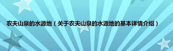 本文关于农夫山泉的水源地的基本详情介绍就讲解完毕,希望对大家有所帮助。