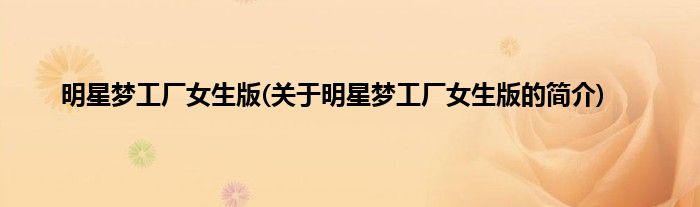 明星梦工厂女生版(关于明星梦工厂女生版的简介)