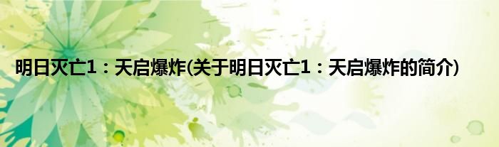 明日灭亡1:天启爆炸(关于明日灭亡1:天启爆炸的简介)