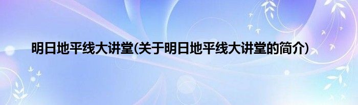 大家好,明日地平线大讲堂,关于明日地平线大讲堂的简介很多人还不知道,现在让我们一起来看看吧!