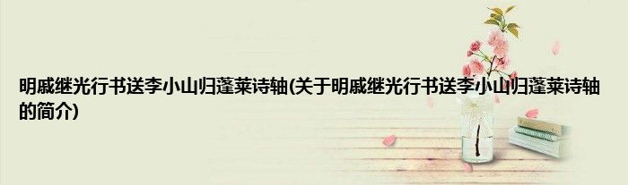 本文关于明戚继光行书送李小山归蓬莱诗轴的简介就讲解完毕,希望对大家有所帮助。