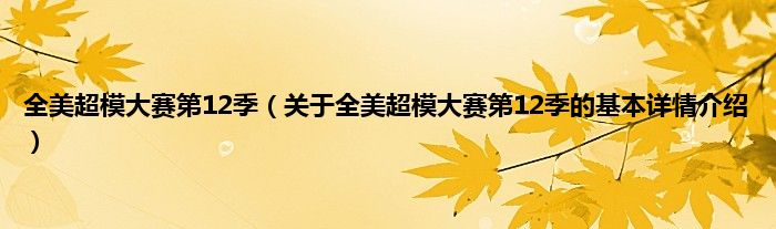 本文关于全美超模大赛第12季的基本详情介绍就讲解完毕,希望对大家有所帮助。