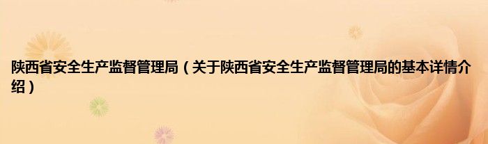本文关于陕西省安全生产监督管理局的基本详情介绍就讲解完毕,希望对大家有所帮助。