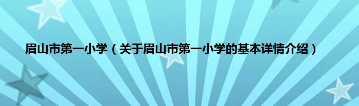 本文关于眉山市第一小学的基本详情介绍就讲解完毕,希望对大家有所帮助。