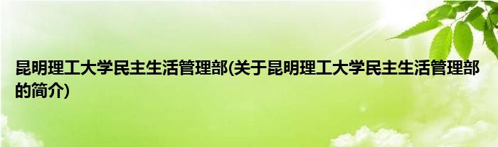 本文关于昆明理工大学民主生活管理部的简介就讲解完毕,希望对大家有所帮助。