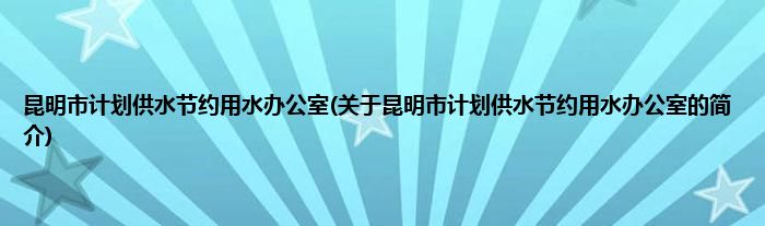 本文关于昆明市计划供水节约用水办公室的简介就讲解完毕,希望对大家有所帮助。