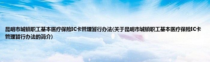 大家好,昆明市城镇职工基本医疗保险IC卡管理暂行办法,关于昆明市城镇职工基本医疗保险IC卡管理暂行办法的简介很多人还不知道,现在让我们一起来看看吧!