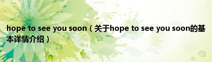 本文关于hope to see you soon的基本详情介绍就讲解完毕,希望对大家有所帮助。