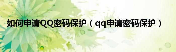 以上就是【如何申请QQ密码保护,qq申请密码保护】相关内容。