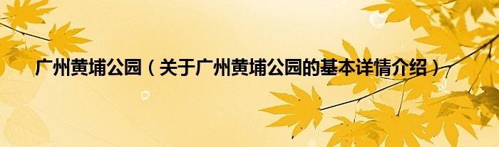 本文关于广州黄埔公园的基本详情介绍就讲解完毕,希望对大家有所帮助。