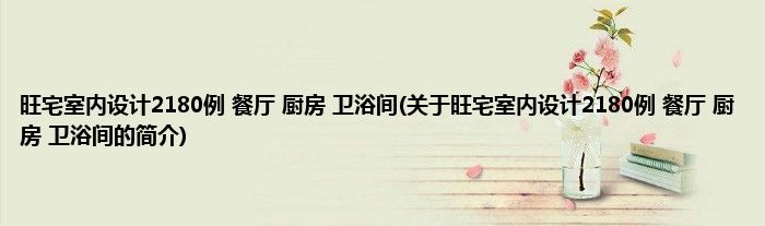 大家好,旺宅室内设计2180例。餐厅。厨房。卫浴间,关于旺宅室内设计2180例。餐厅。厨房。卫浴间的简介很多人还不知道,现在让我们一起来看看吧!